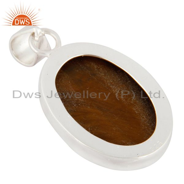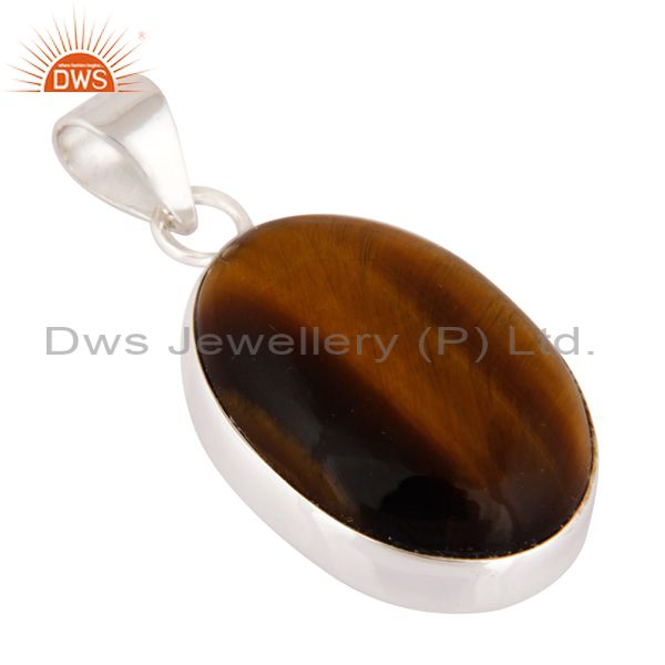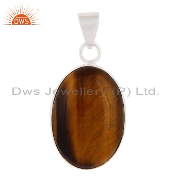 Handmade 925 Sterling Silver Bezel Set Semi Precious Gemstone Tiger Eye Pendant