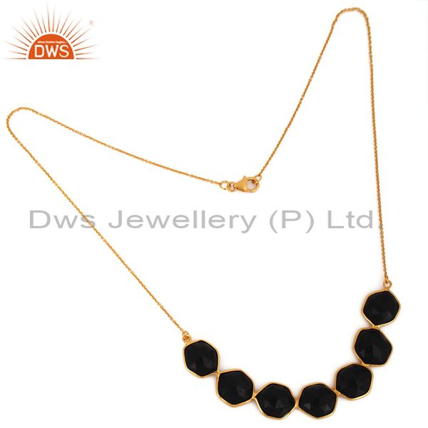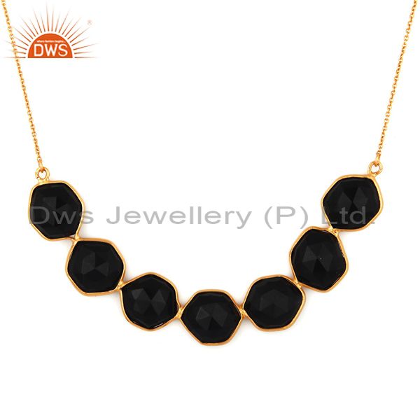 Handmade 925 Sterling Silver Black Onyx Faceted Gemstone Gold Plated Necklace
