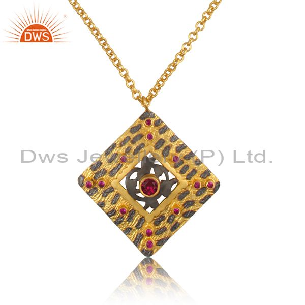 Handmade 925 Sterling Silver Gold Plated Zircon Pendant Manufacturer India