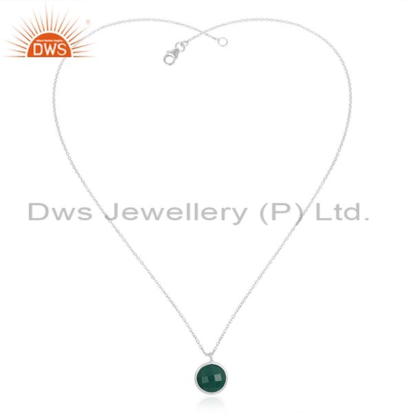 Handmade 92.5 Sterling Silver Green Onyx Gemstone Pendant With Chain Wholesale