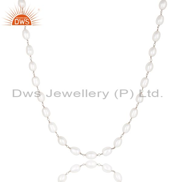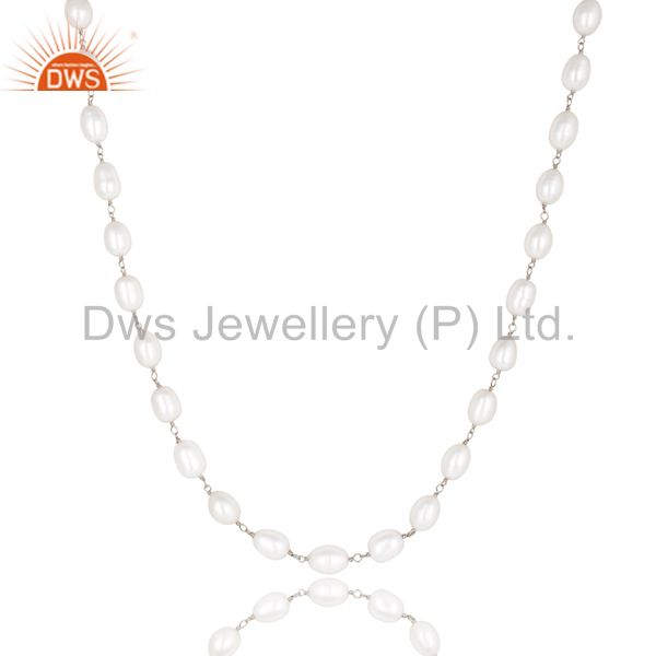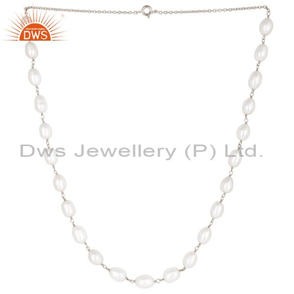 Handmade 925 Sterling Silver Pearl Beads 16 Inch Chain Necklace Jewelry