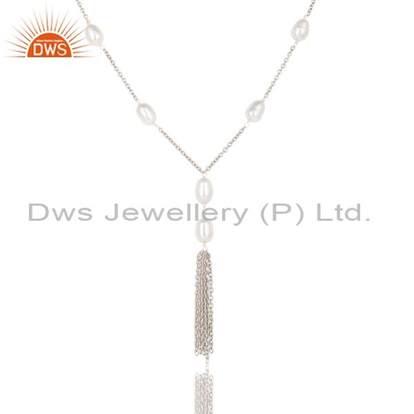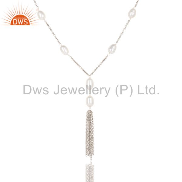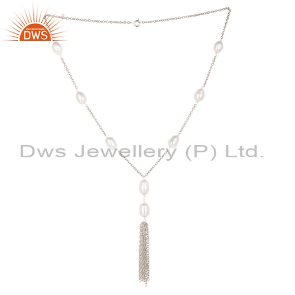 Handmade 925 Sterling Silver Pearl Beads 16 Inch Drops Chain Necklace Jewelry