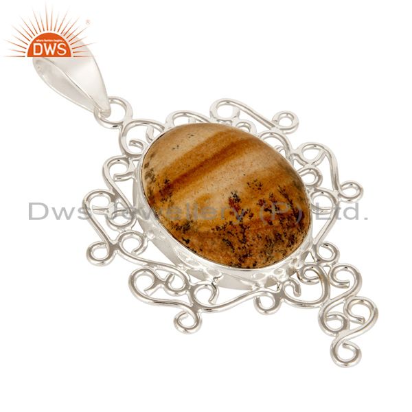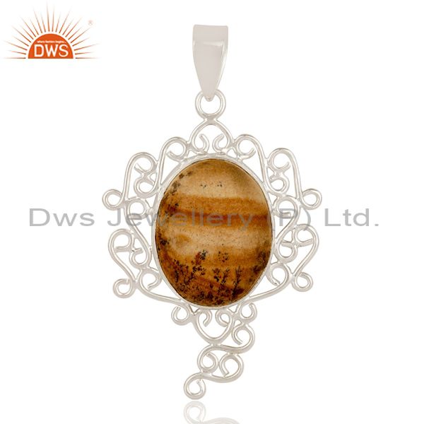 Handmade 925 Sterling Silver Picture Jasper Gemstone Designer Pendant