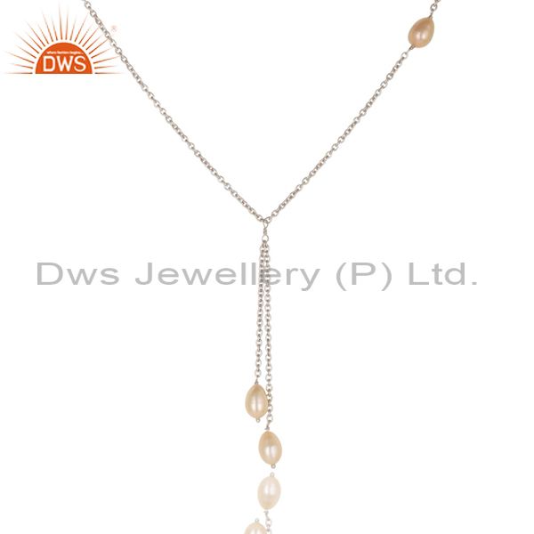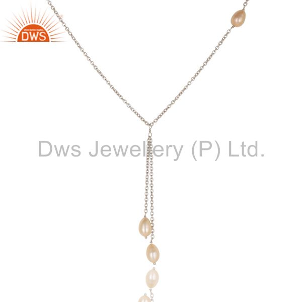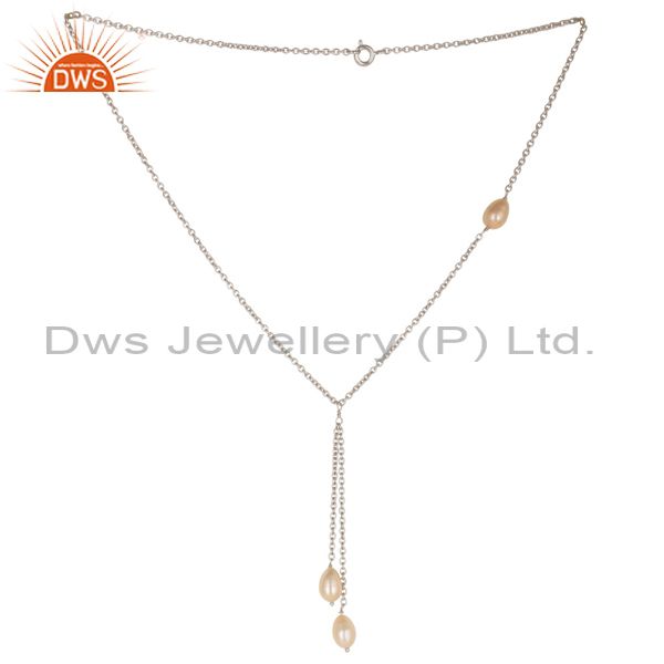 Handmade 925 Sterling Silver Pink Pearl Beads 16 Inch Drops Chain Necklace