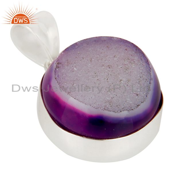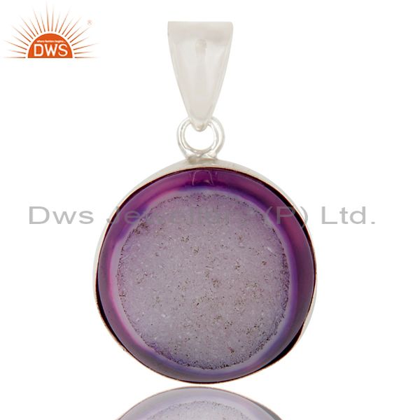 Handmade 925 Sterling Silver Purple Druzy Agate Bezel Set Pendant