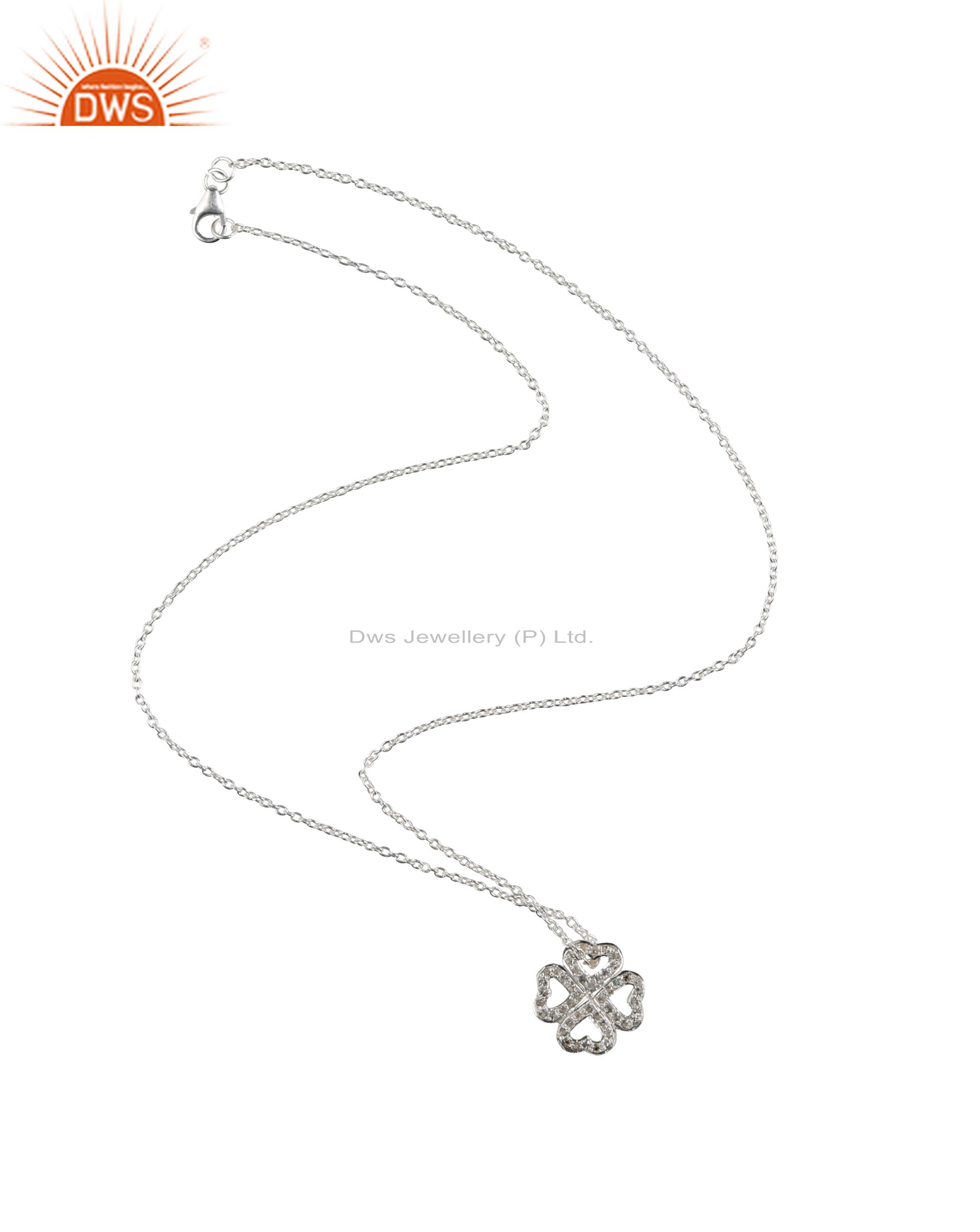 Handmade 925 Sterling Silver White Topaz Heart Pendant With Chain Necklace