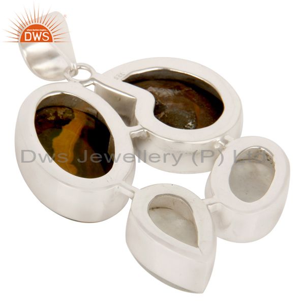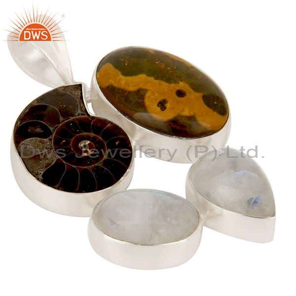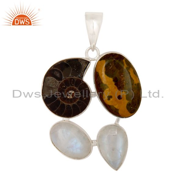 Handmade Ammonite And Rainbow Moonstone Bezel Set Sterling Silver Pendant