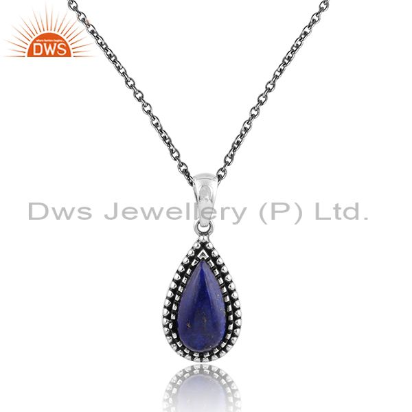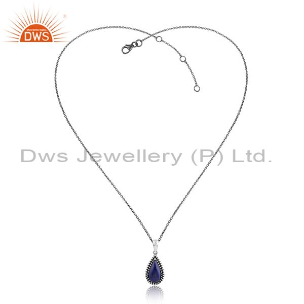 Handmade Artisan Oxidized Silver 925 Necklace With Natural Lapis