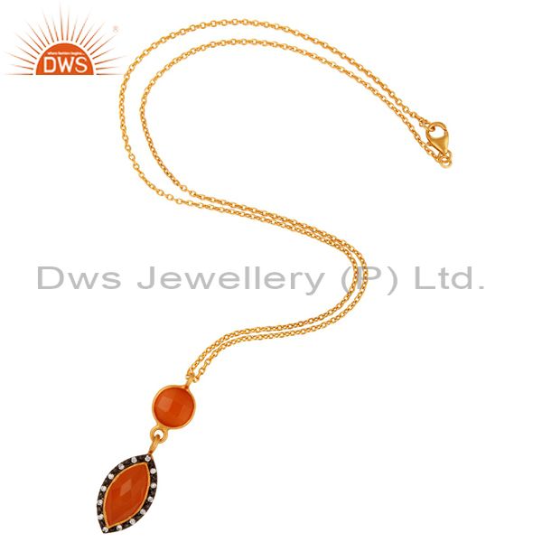 Handmade Artisan Sterling Silver Peach Moonstone Unique Designer Pendant With Cz