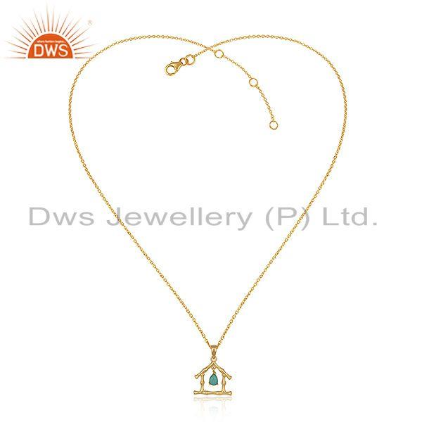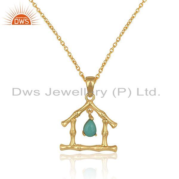 Handmade Bamboo Home Gold On Silver Arizona Turquoise Necklace
