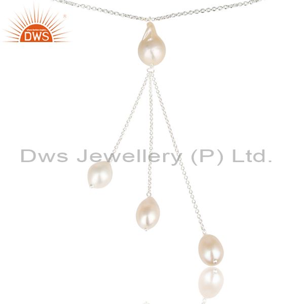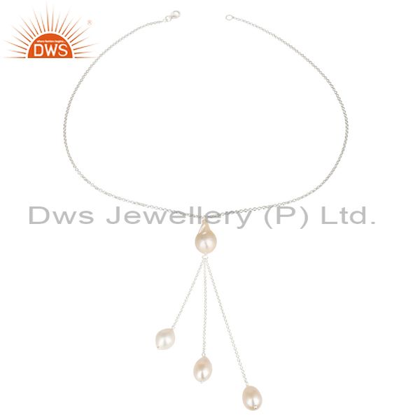 Handmade Beautiful Pearl Beads Chain Drops Necklace Made In 925 Sterling Silver