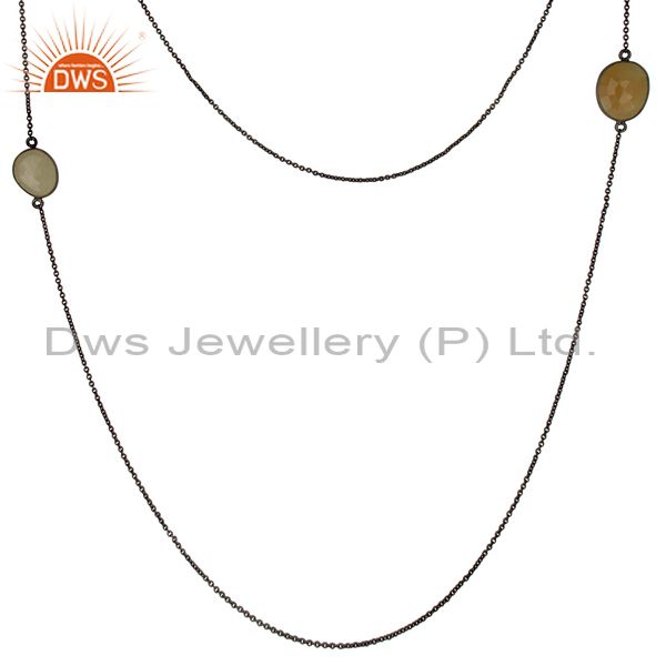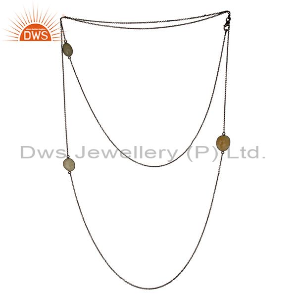 Handmade Black Oxidized 925 Silver Multi Color Sapphire 44 Inch Chain Necklace