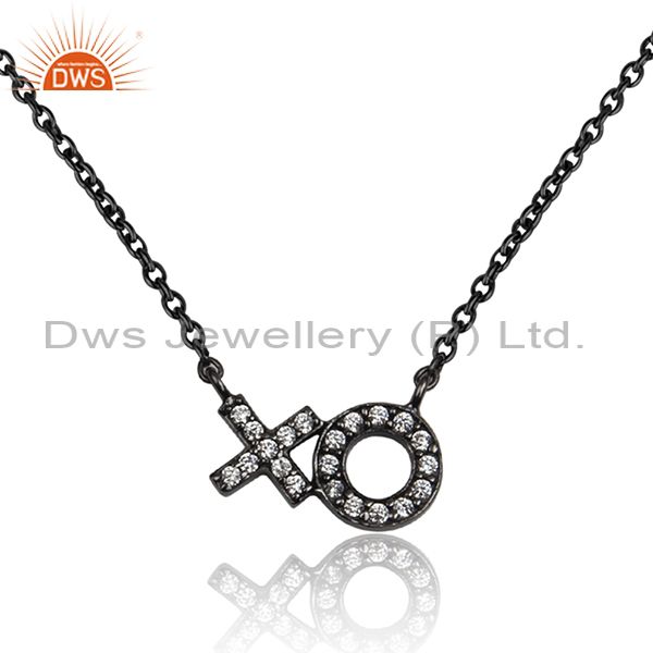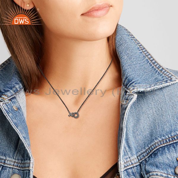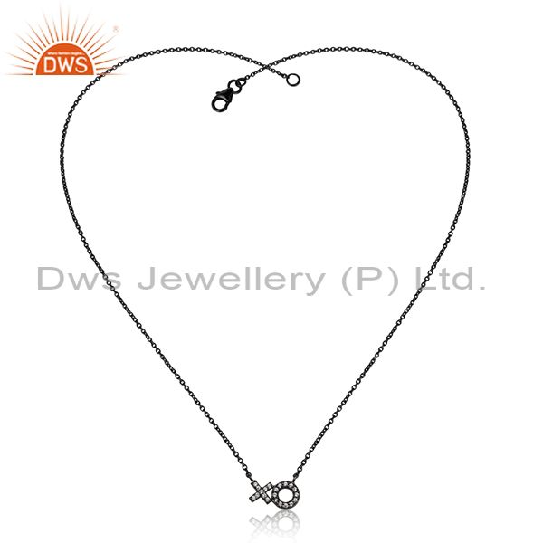 Handmade Black Rhodium Plated Silver Cz Chain Pendant Necklace