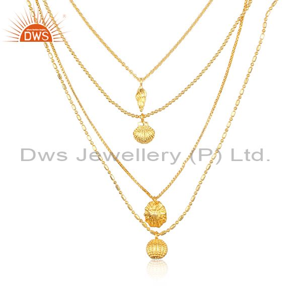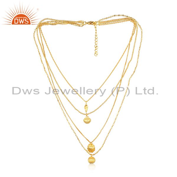 Handmade Charms Set Brass Gold Multi Chain Fancy Necklace