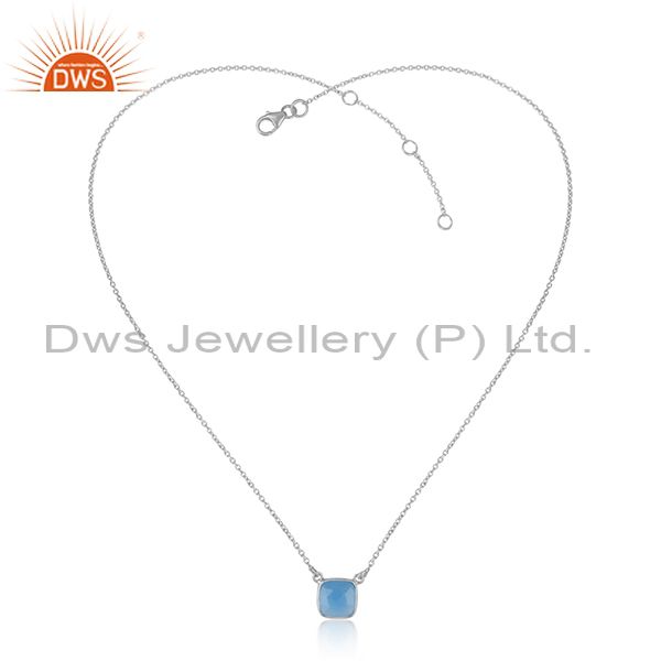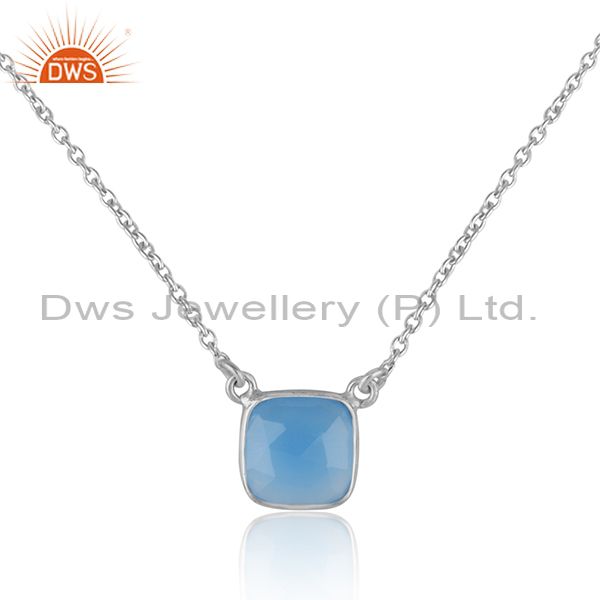 Handmade Dainty Necklace In Silver 925 Adorn With Blue Chalcedony