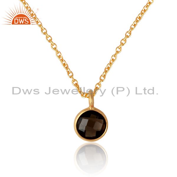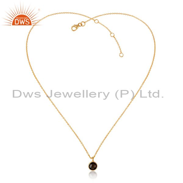 Handmade Dainty Necklace in Yellow Gold on Silver with Smoky