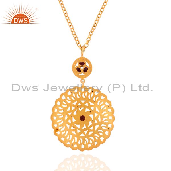 Handmade Filigree Sterling Silver Tourmaline & White Zicon Pendant Gold Plated