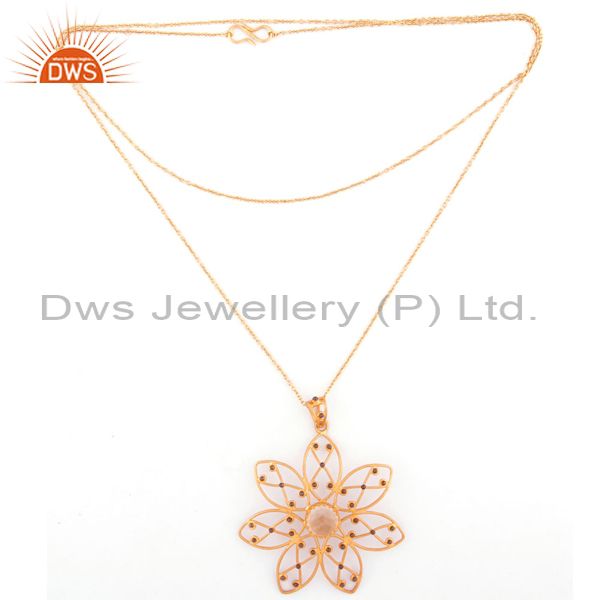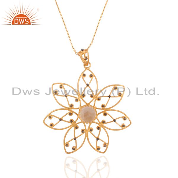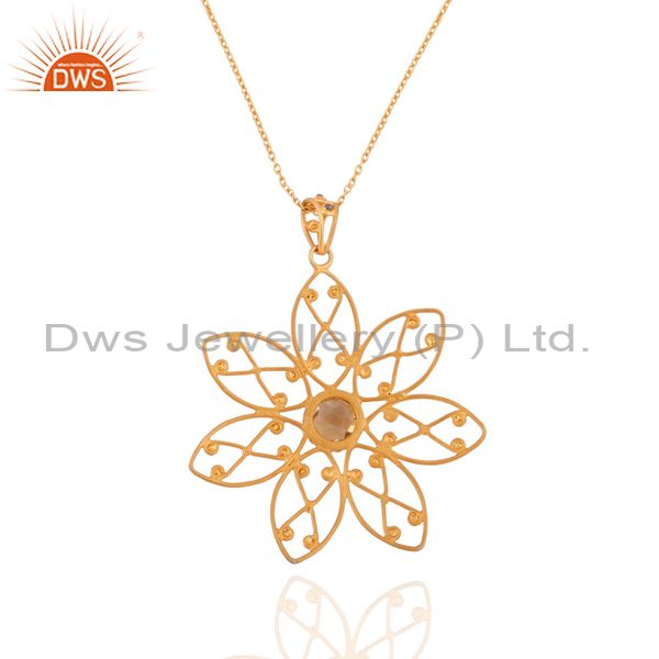 Handmade Flower Design Citrine Gemstone 24K Gold Over Sterling Silver Pendant 30