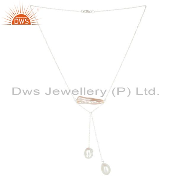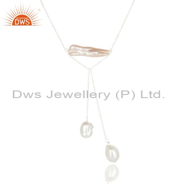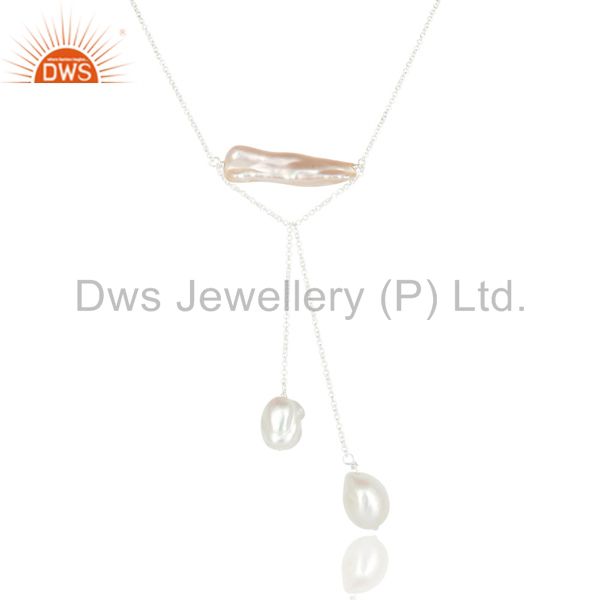 Handmade Fresh Water Pearl & Pearl Chain Necklace Made In 925 Sterling Silver