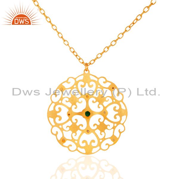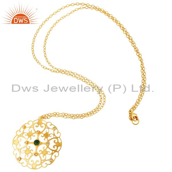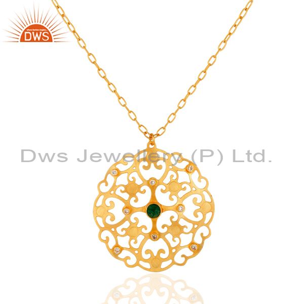 Handmade Gold Plated Green Onyx Gemstone Designer Pendant Necklace With Cz