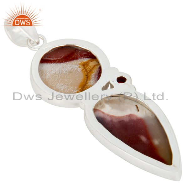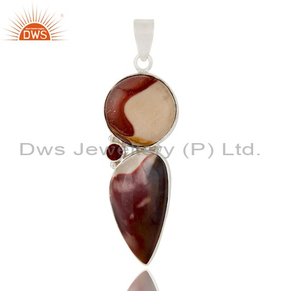 Handmade Mookaite And Garnet Solid Sterling Silver Gemstone Bezel Set Pendant