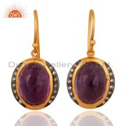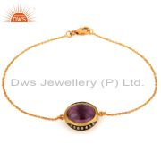Handmade Natural Amethyst Gemstone 925 Sterling Silver Gold Plated Chain Pendant