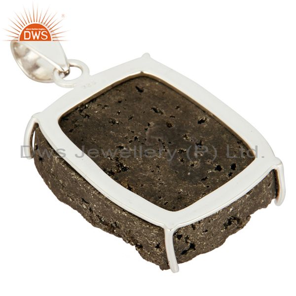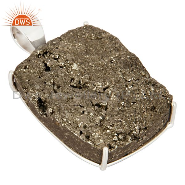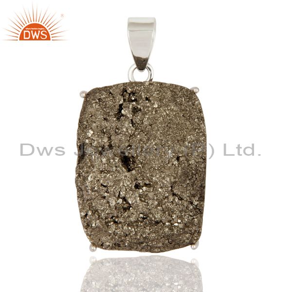 Handmade Natural Pyrite Druzy Gemstone Solid 925 Sterling Silver Pendant