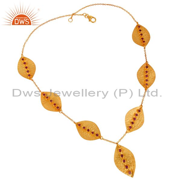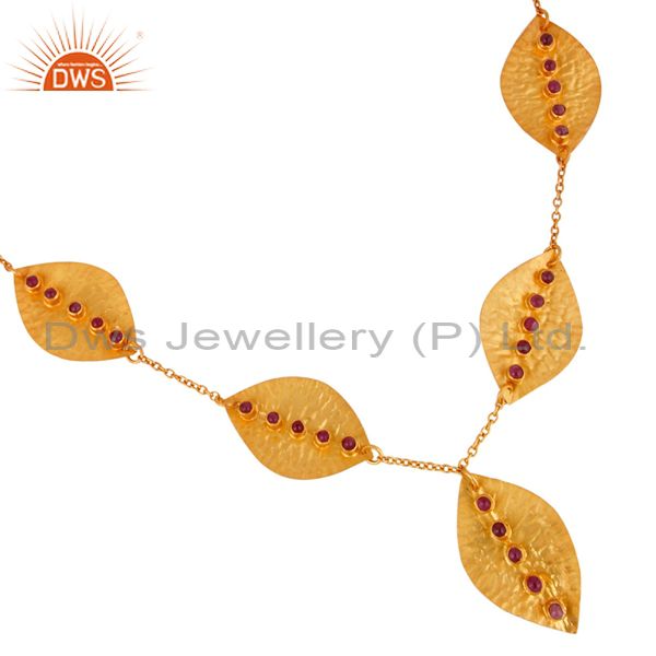 Handmade Natural Ruby Gemstone Sterling Silver Necklace With Gold Plated