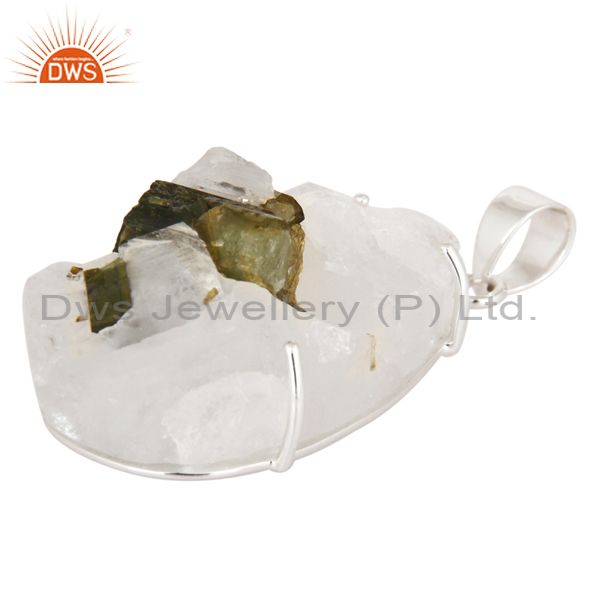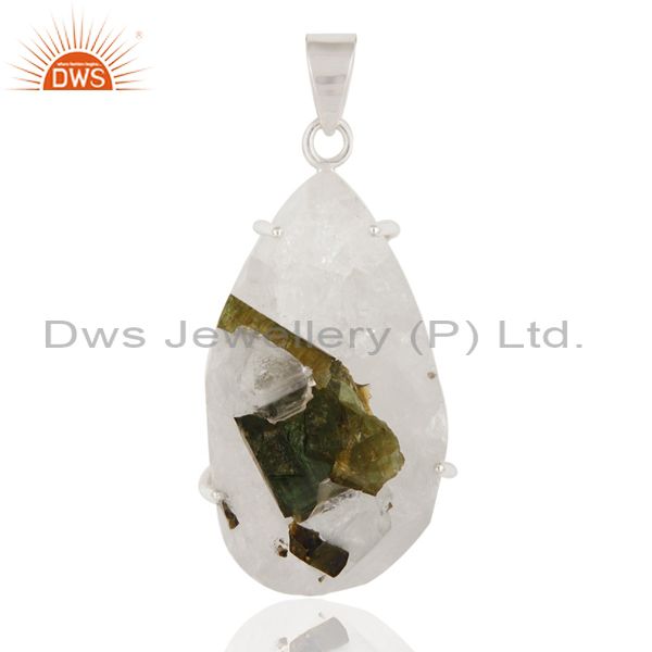 Handmade Natural Tourmaline Rough Druzy Pendent Made In Solid Sterling Silver