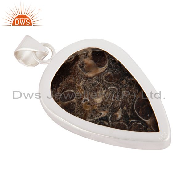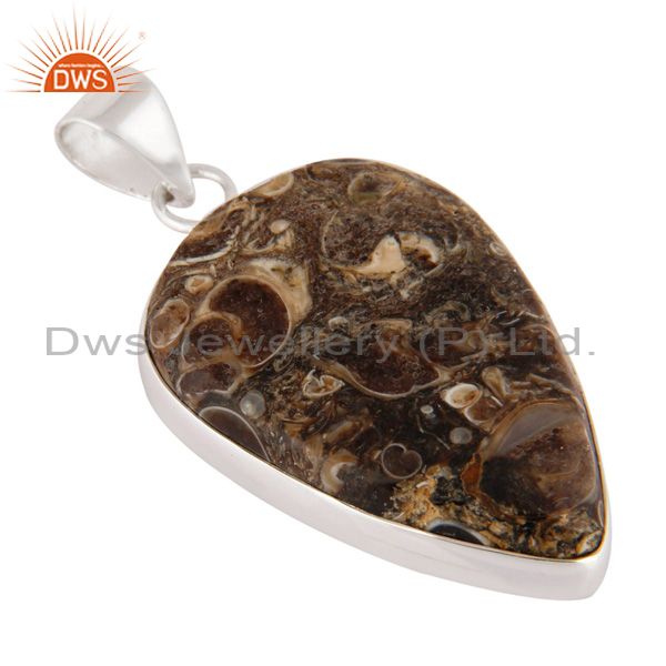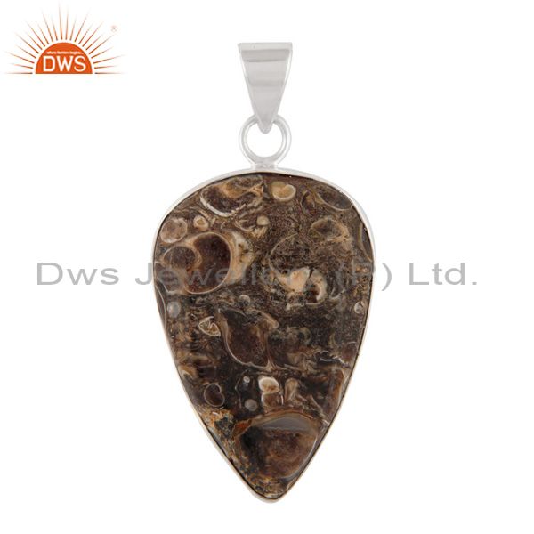Handmade Natural Turritella Agate Gemstone 925 Sterling Solid Silver Pendant