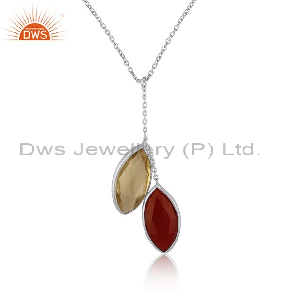 Handmade Necklace In Silver With Glossy Lemon Topaz And Red Onyx