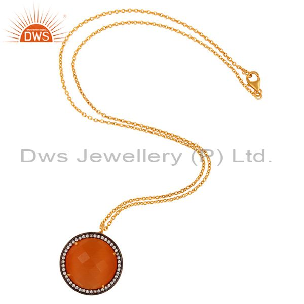 Handmade Peach Moonstone 18K Yellow Gold Plated 925 Sterling Silver Pendant