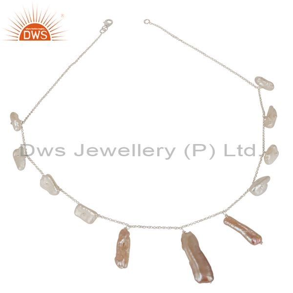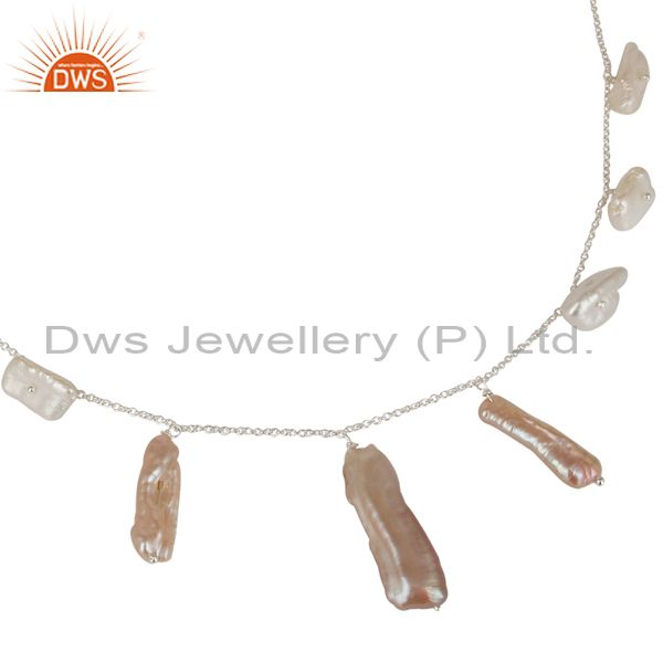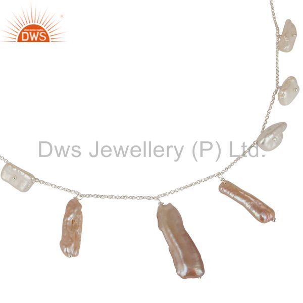 Handmade Pink Fresh Water Pearl 925 Sterling Silver 16 Inch Chain Necklace