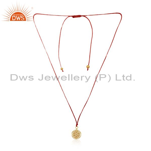 Handmade Pink Macrame Pendant With Gold Plated 925 Sterling Silver