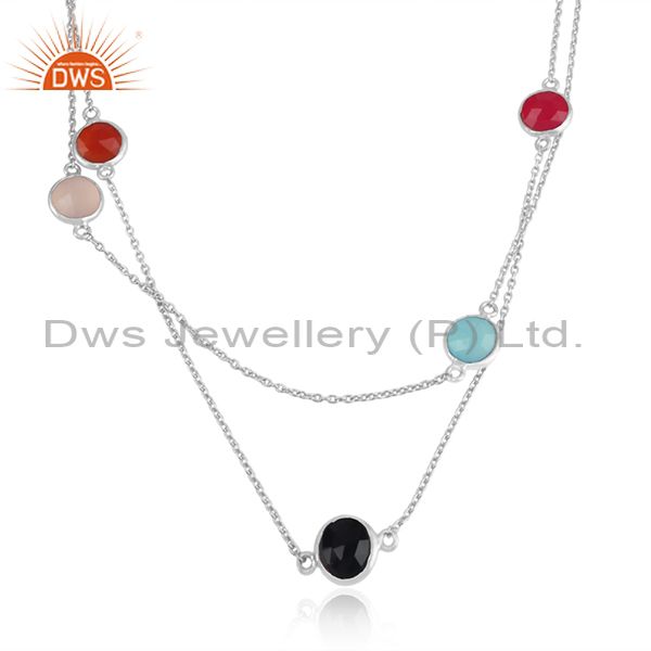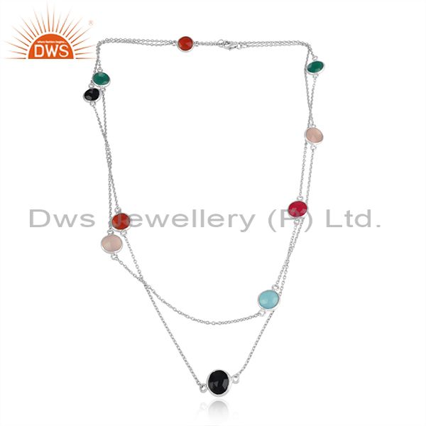 Handmade Silver Long Necklace With Multi Chalcedony Onyx