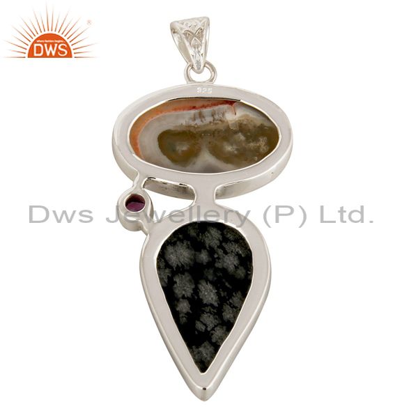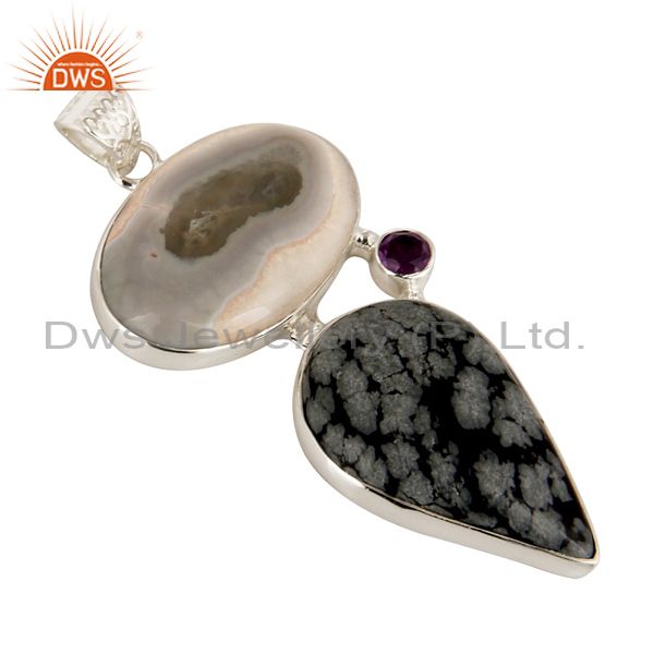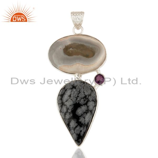 Handmade Solar Quartz And Snowflake Obsidian Solid Silver Pendant