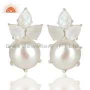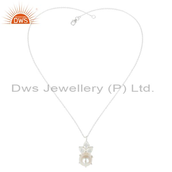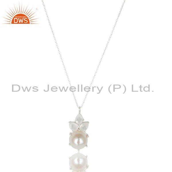 Handmade Solid 925 Silver Pearl & Rainbow Moonstone Prong Set Chain Pendant