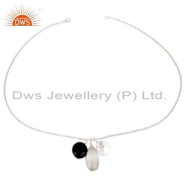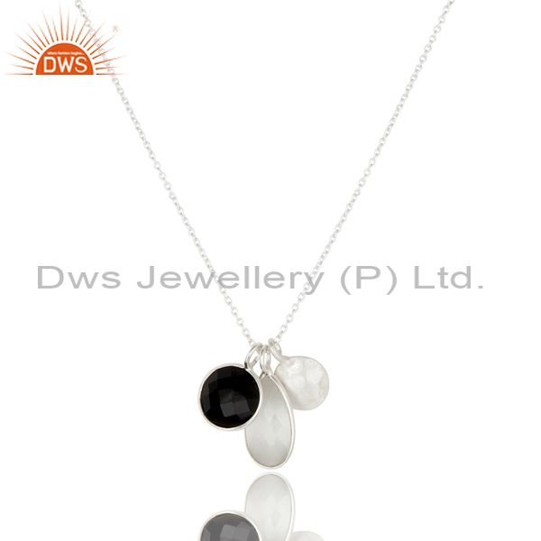 Handmade Solid 925 Sterling Silver Black Onyx & White Moonstone Chain Pendant