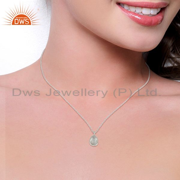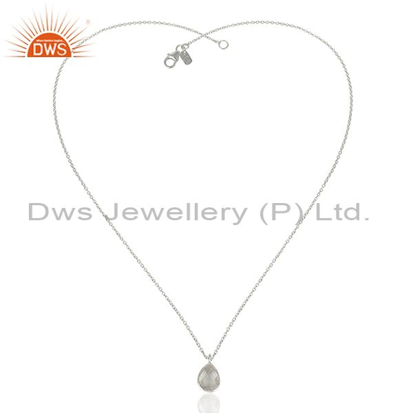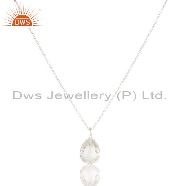 Handmade Solid 925 Sterling Silver Crystal Quartz Bezel Set Chain Pendant