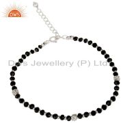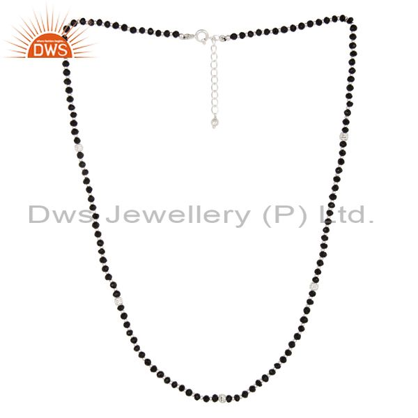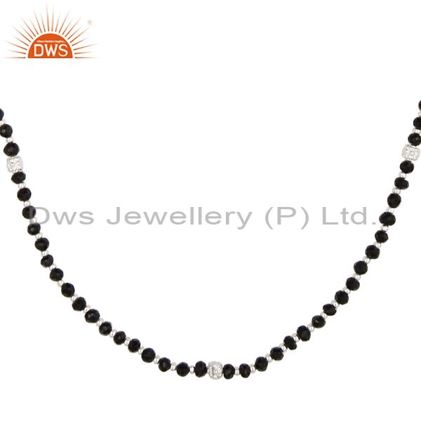 Handmade Solid 925 Sterling Silver Faceted Black Onyx Beads Chain Necklace