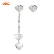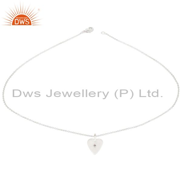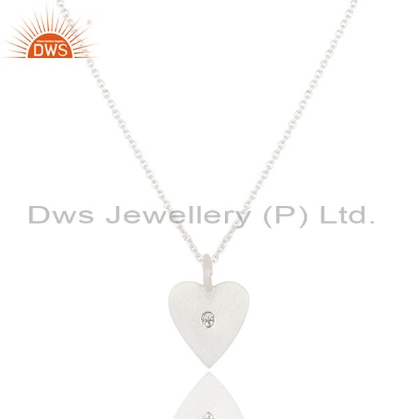 Handmade Solid 925 Sterling Silver Heart Design White Topaz Chain Pendant
