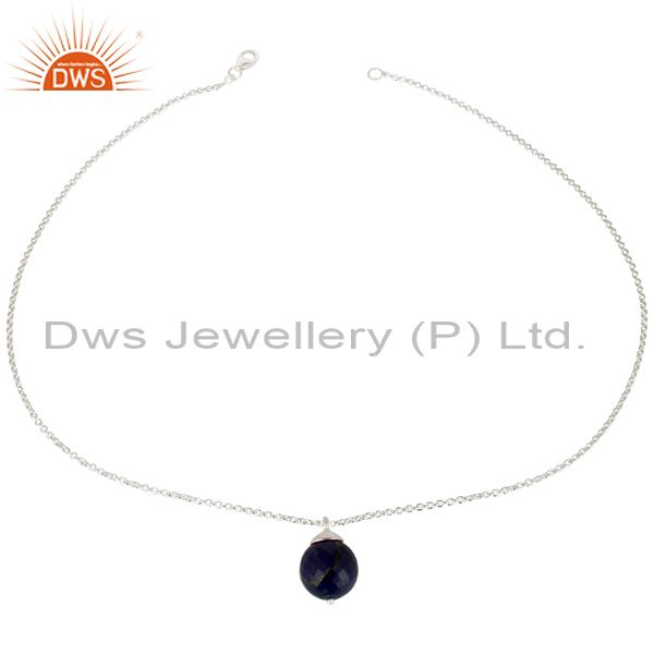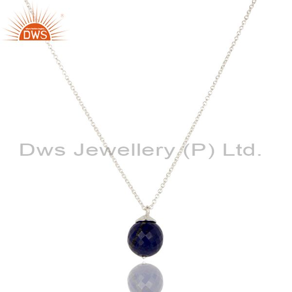 Handmade Solid 925 Sterling Silver Lapis Faceted Designer Chain Pendant Jewelry