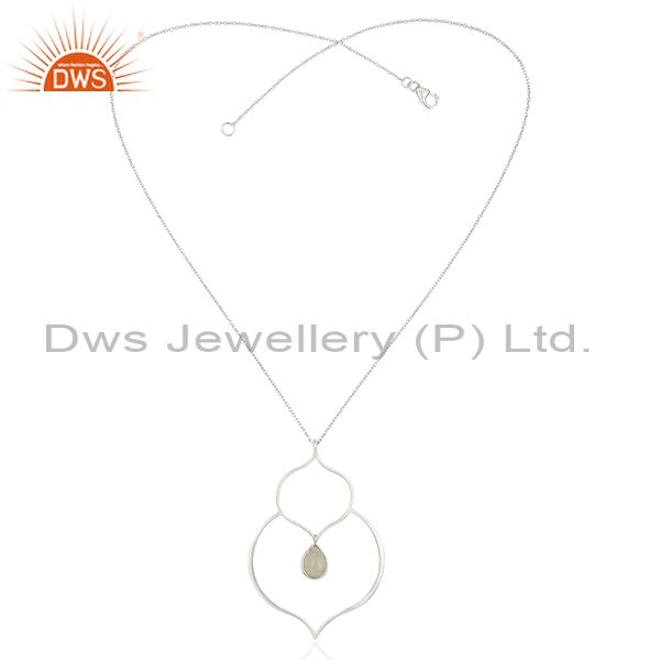 Handmade Solid 925 Sterling Silver Rainbow Moonstone Bezel Set Chain Pendant