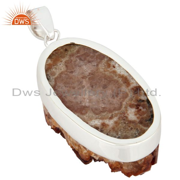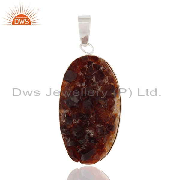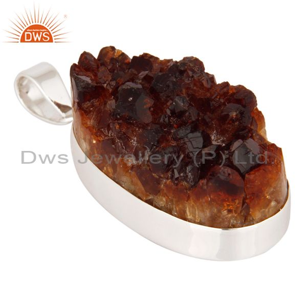 Handmade Solid 925 Sterling Silver Rough Citrine Cluster Druzy Geode Pendant