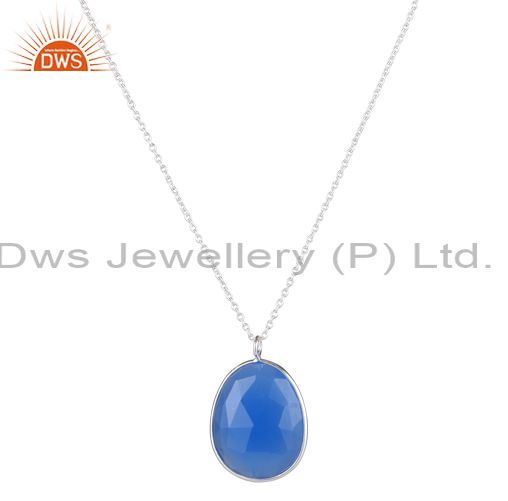 Handmade Solid Sterling Silver Blue Chalcedony Bezel Set Pendant With Chain