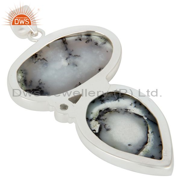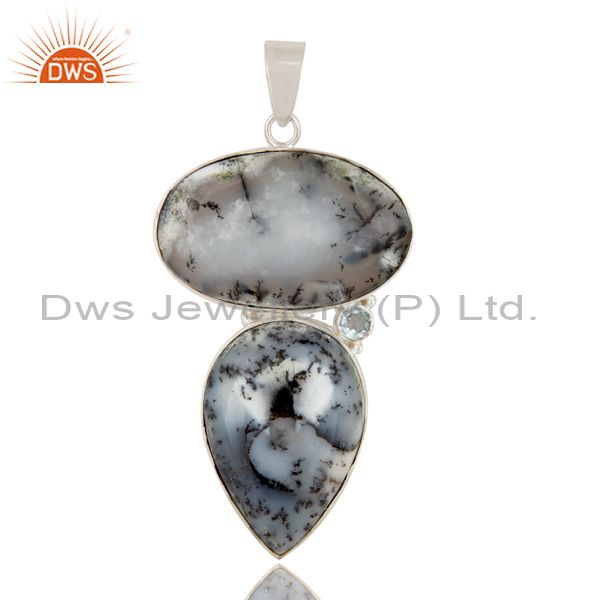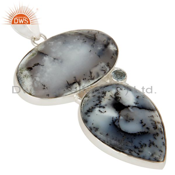 Handmade Solid Sterling Silver Dendritic Opal And Blue Topaz Bezel Set Pendant
