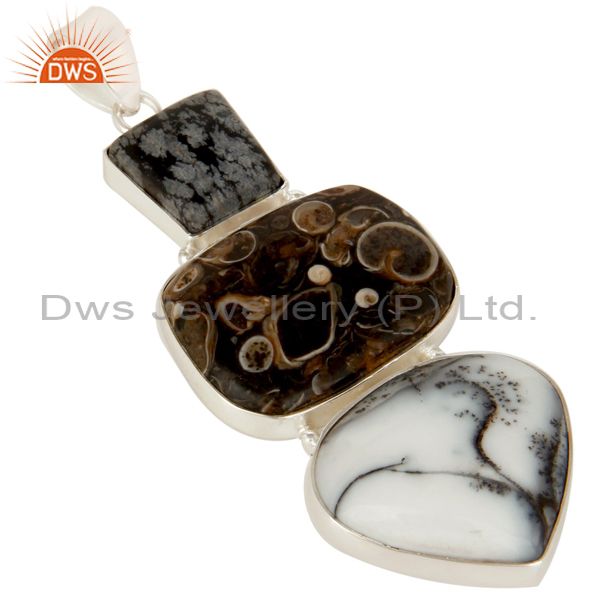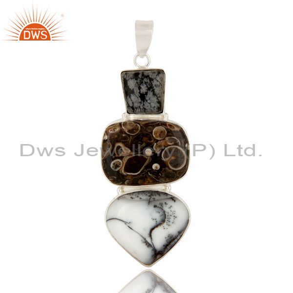 Handmade Solid Sterling Silver Dendritic Opal And Turritella Agate Pendant