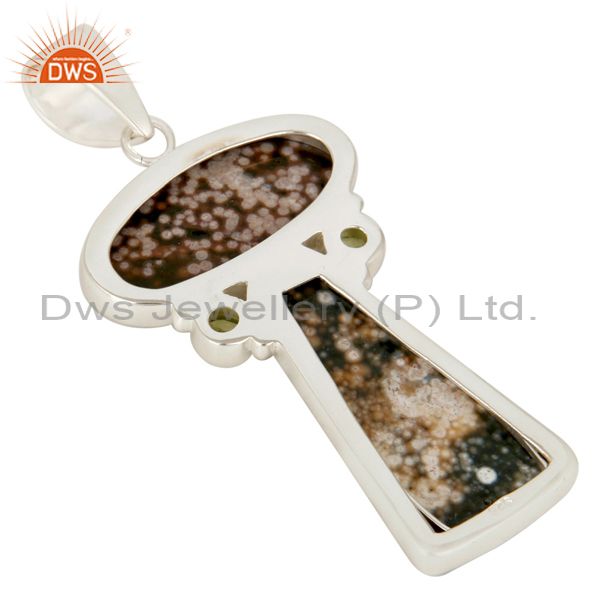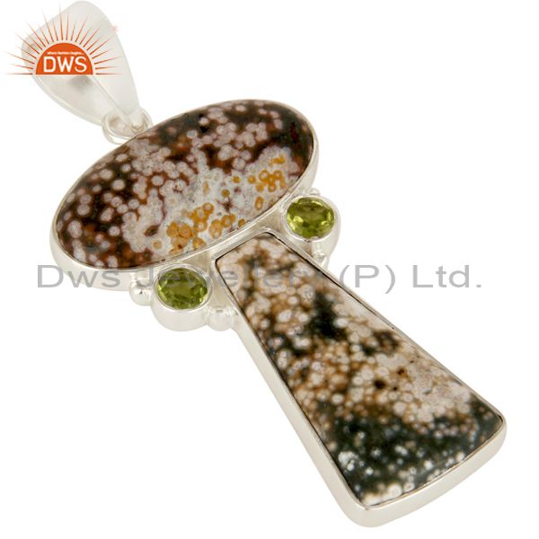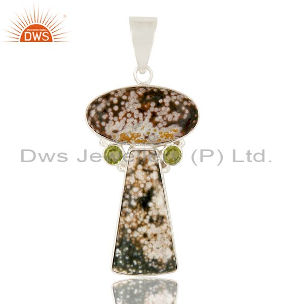 Handmade Solid Sterling Silver Ocean Jasper And Snowflake Obsidian Pendant