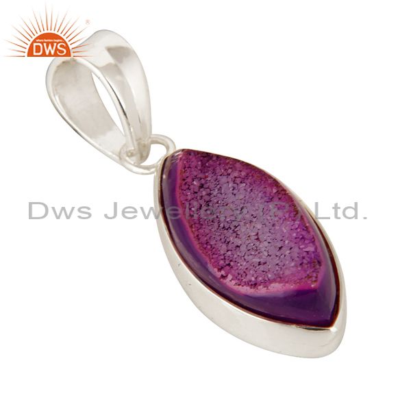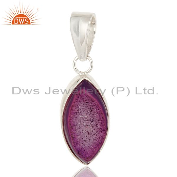 Handmade Solid Sterling Silver Pink Druzy Agate Marquise Pendant