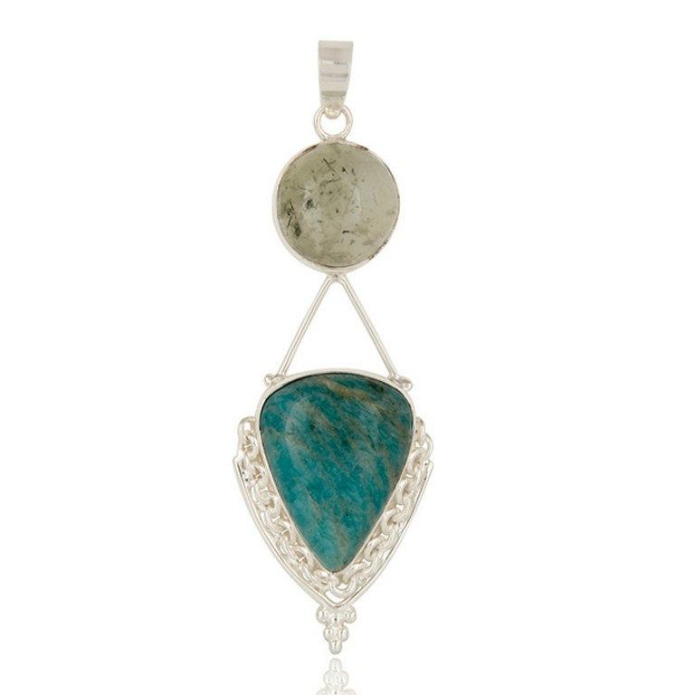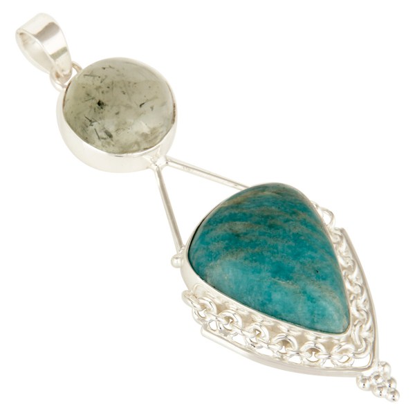 Handmade Sterling Silver Amazonite And Prehnite Gemstone Pendant